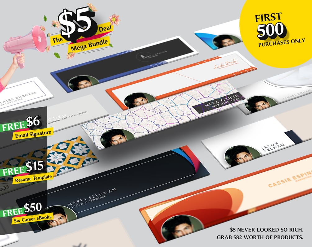 N.B. Only the above LinkedIn Banner Bundle files will be instantly ready for download. We'll ready rest of the "on offer" files and zip them all together, once we know your preference. You're free to choose any email signature, resume template from our store. We'll send an email after you complete a purchase. Over 35 Email Signatures and Resume Templates to choose from š https://careercanvas.gumroad.com