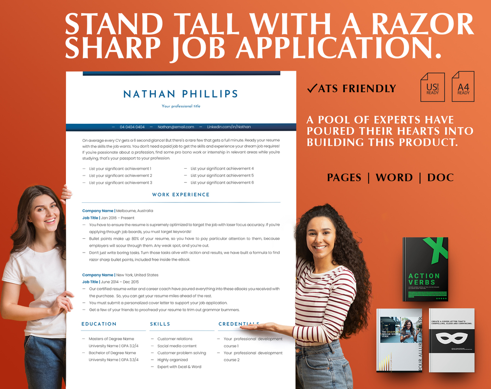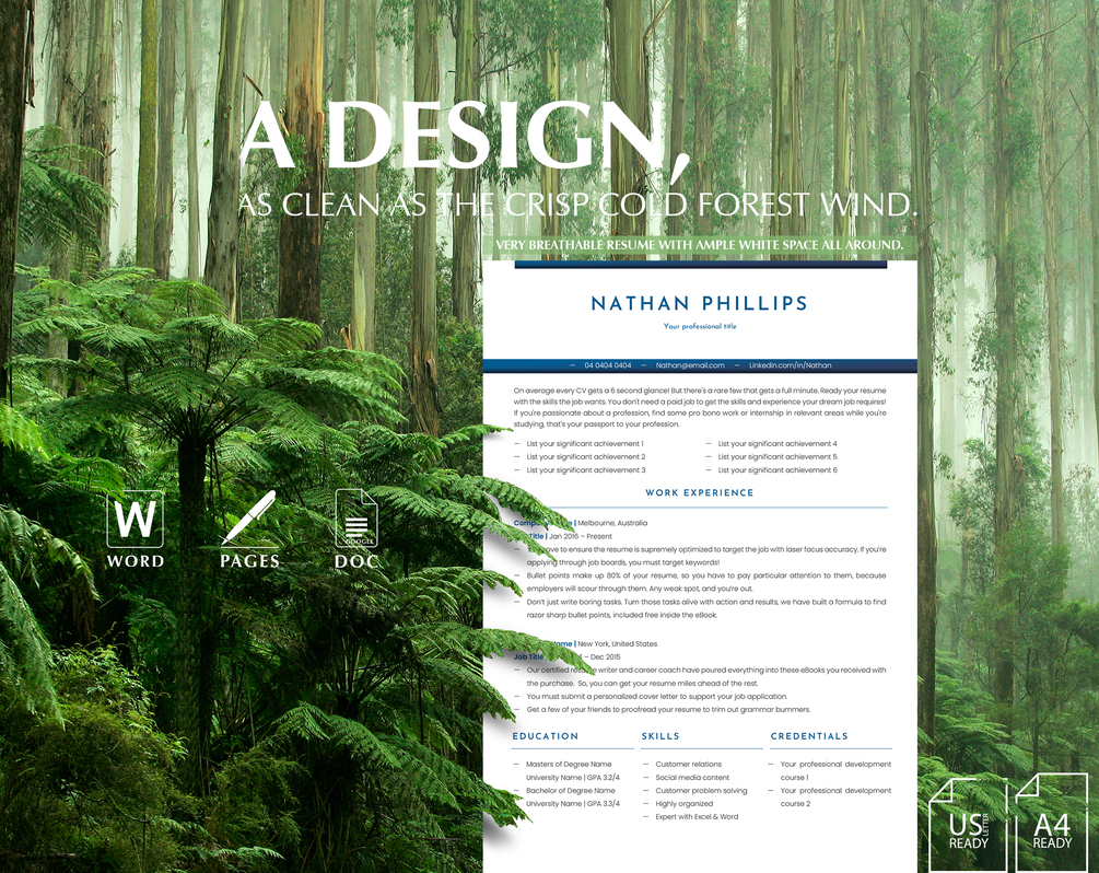 ⤠Formatted for A4 & US Letter size (24 CV template files in total)
