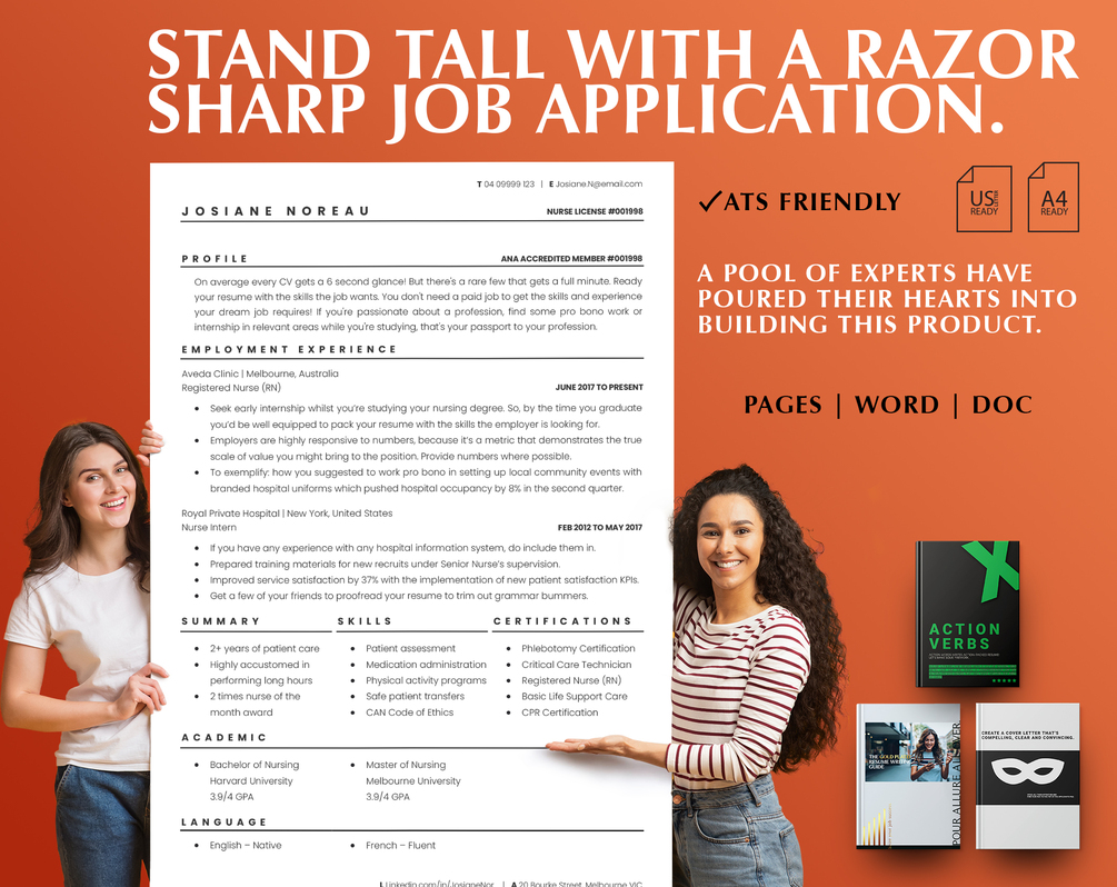 RN Nurse Resume Template, RN and New Nurse Resume Template | Professional Registered Nurse CV Design | One & Two Page Resume | Also Perfect for New Grad Nurses