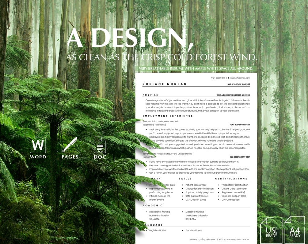 2. Cross platform compatibility with 100% technical accuracy is never possible, due to the inherent application limitations. We can state with full confidence the Google Doc and Pages resume files looks close to 99% or over as it appears on the mockup.But rest assured the mockup looks 100% like it does on MS Word.