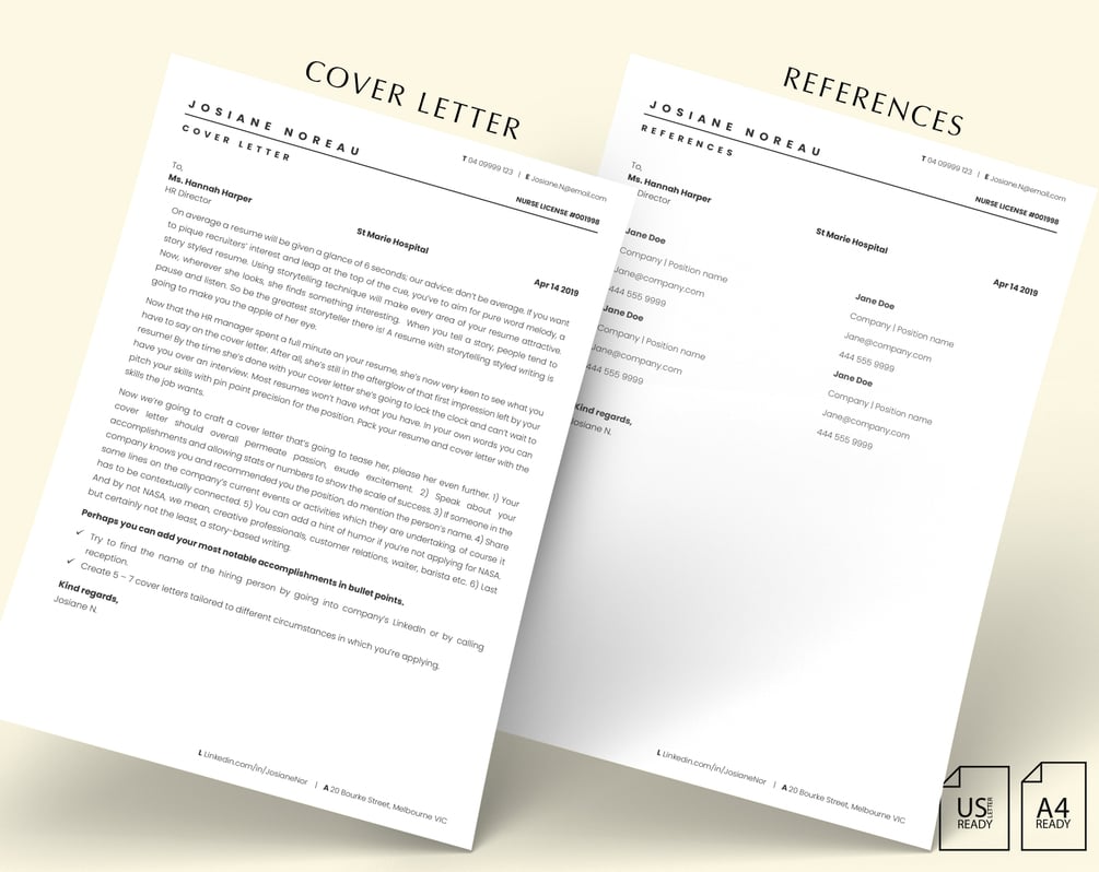 RN Nurse Resume Template, RN and New Nurse Resume Template | Professional Registered Nurse CV Design | One & Two Page Resume | Also Perfect for New Grad Nurses