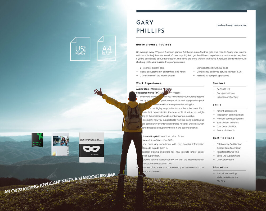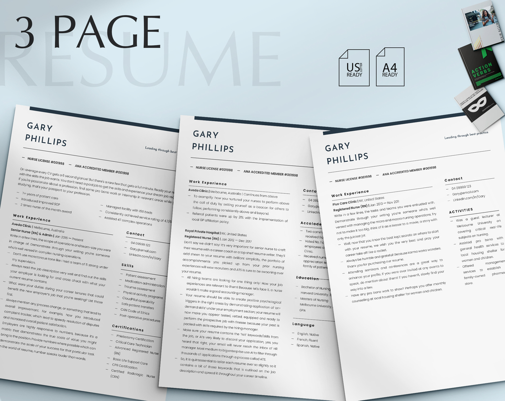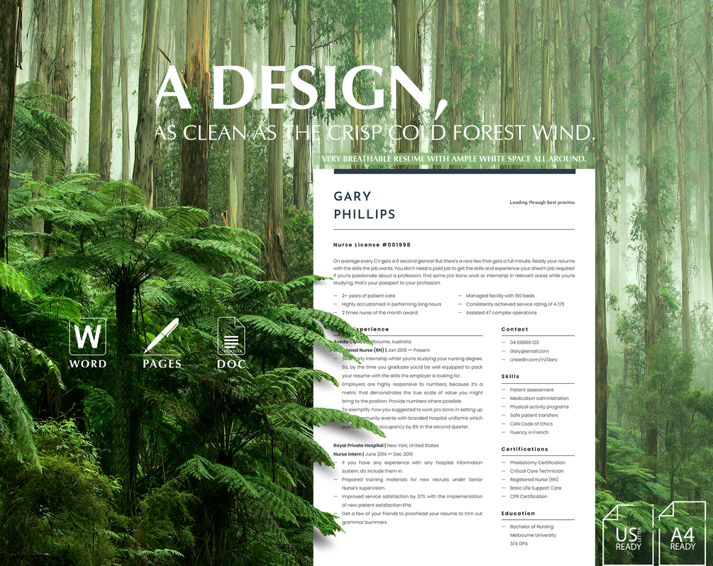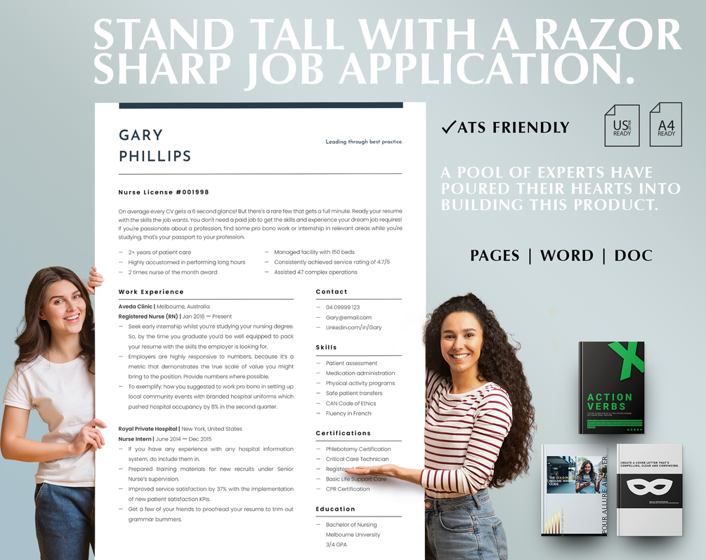 Registered Nurse Resume for Google Docs, Pages & MS Word paired with matching cover letter and reference | RN Student Nurse ATS Resume