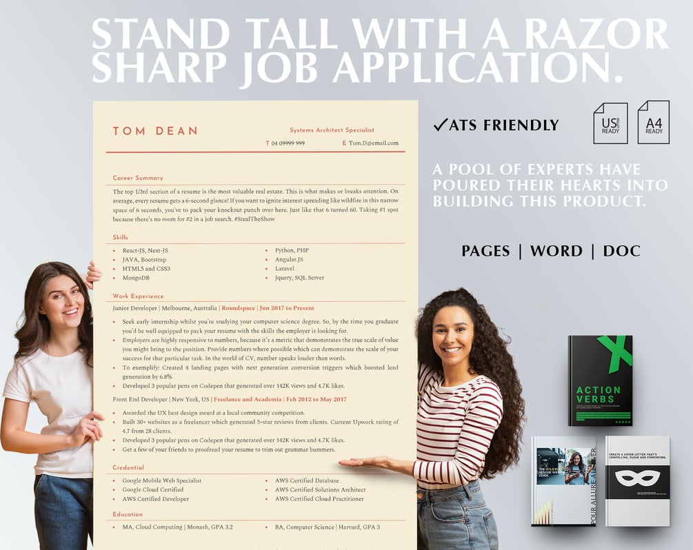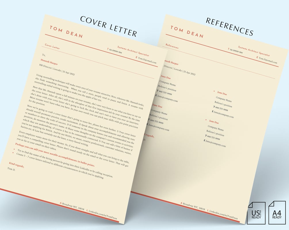 ⤠Formatted for A4 & US Letter size (24 CV template files in total)